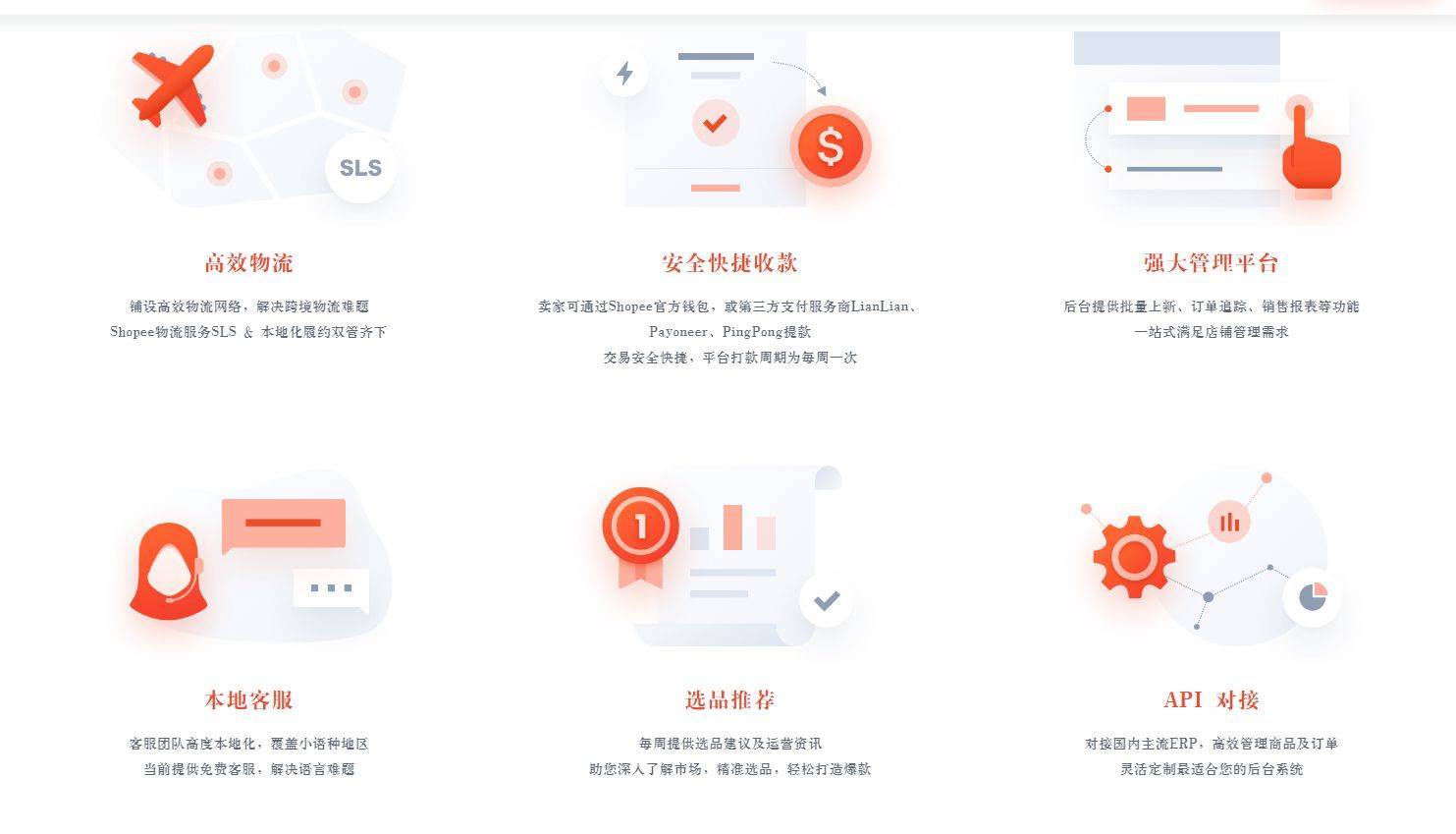 Shopee聚焦移动端,在东南亚购物类App中下载量排名第一。Shopee不同市场的独立App更为各地消费的人带来本地化体验。经了解,Shopee跨境一站式解决方案也十分完善,能够在一定程度上帮助跨境卖家解决物流、金流等难题,中国卖家可以信赖地选择入驻Shopee。