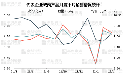 从企业财报及卓创资讯监测数据均可看出,4月产品综合售价均呈上行走势,但屠宰企业理论亏损却加重,理论平均亏损0.11元/斤,环比跌幅399.63%,同比涨幅45.30%。主因4月毛鸡均价相较于3月显著提升,屠宰成本增加。产品综合售价涨幅不及屠宰成本提升幅度,致使屠宰企业处于亏损状态。鉴于上游饲料价格持续高位运行,所以养殖及屠宰成本均处高位,对毛鸡价格有一定托底作用。预计5-6月屠宰盈利仍难有改观,进一步制约企业开工。
