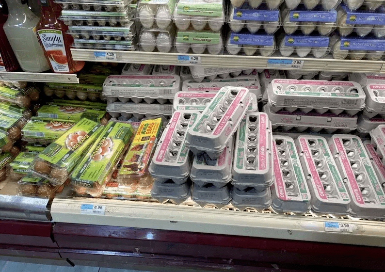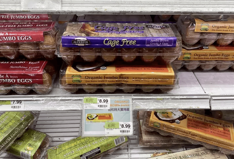造访华人超市可发现,廉价的蛋约3.99元一打,最贵的有机鸡蛋可达8.99元一打。有些华人顾客挑选少买,陈Grace说曾经家中每人每天一颗蛋,之后变成两三天一个。“不只蛋价,什么都涨”。超市业者也称鸡蛋价格涨到离谱,法拉盛长江超市林司理称“最近买鸡蛋的少了许多”,白鸡蛋比较廉价,在三四元左右,有机蛋一打8元以上,加上偷盗猖獗,“偷鸡蛋,还有生果蔬菜,每天都抓两三个,像无底洞。”
