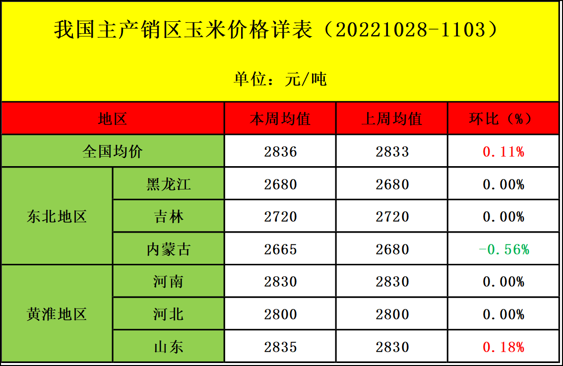 本周国内玉米均价为2836元/吨,与上星期均价比较,上涨3元/吨,涨幅0.11%。