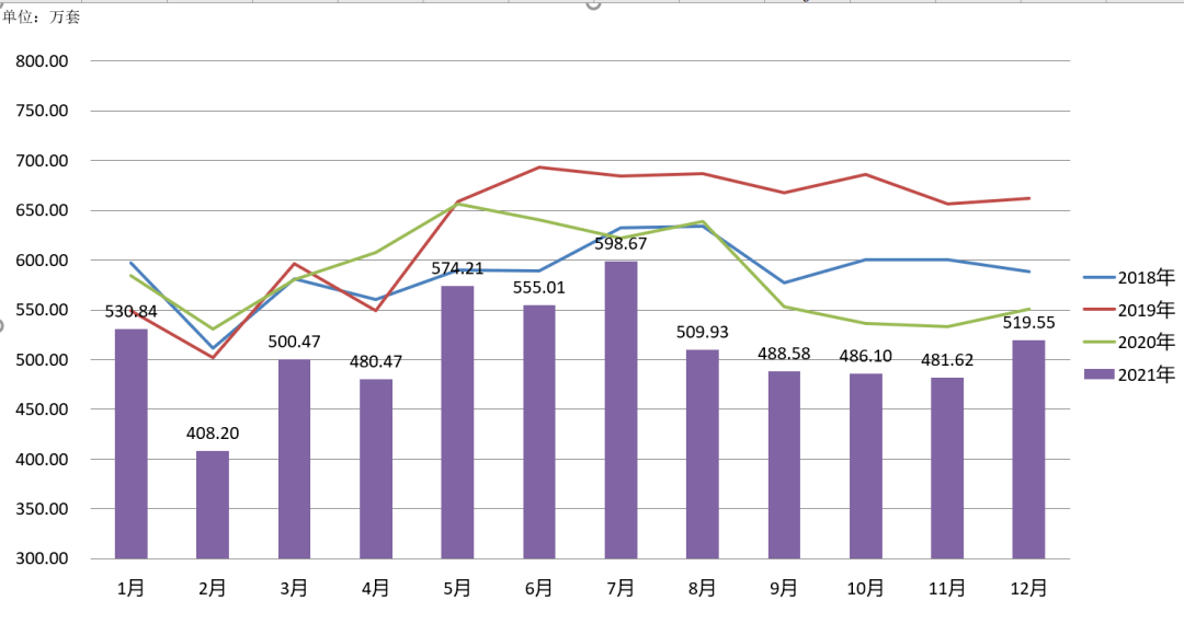 2.3.6 2018-2021年商品代雏鸡供应量2021年,监测企业商品代雏鸡销售量同比减少6.35%,下半年减幅显著增大,说明需求端形势不及2020年同期。