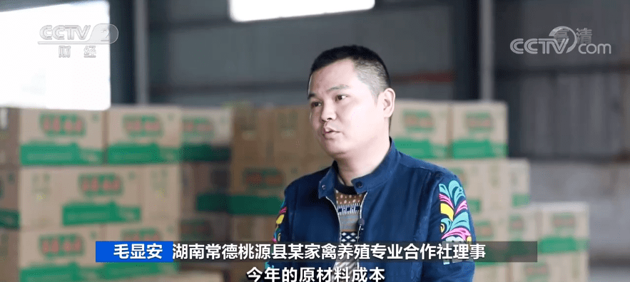 湖南常德桃源县某家禽饲养专业合作社理事 毛显安:本年的原材料本钱,玉米、豆粕提价涨得比较凶猛,为了躲避危险,有一部分就没养。