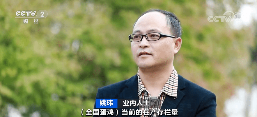 业内人士 姚玮:全国蛋鸡当时的在产存栏量,10亿出面,与上一年同期相比,大约少了2亿左右。国庆之后,大范围大起伏的降温,导致产蛋鸡全体的产蛋率下滑,每下滑一个点,就等于短时间内少了一千万只蛋鸡。
