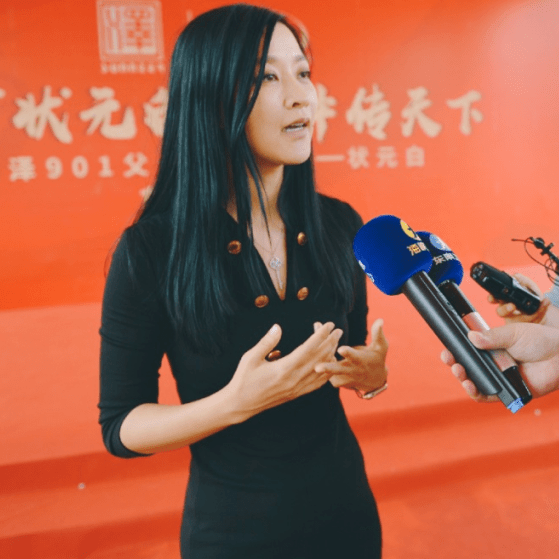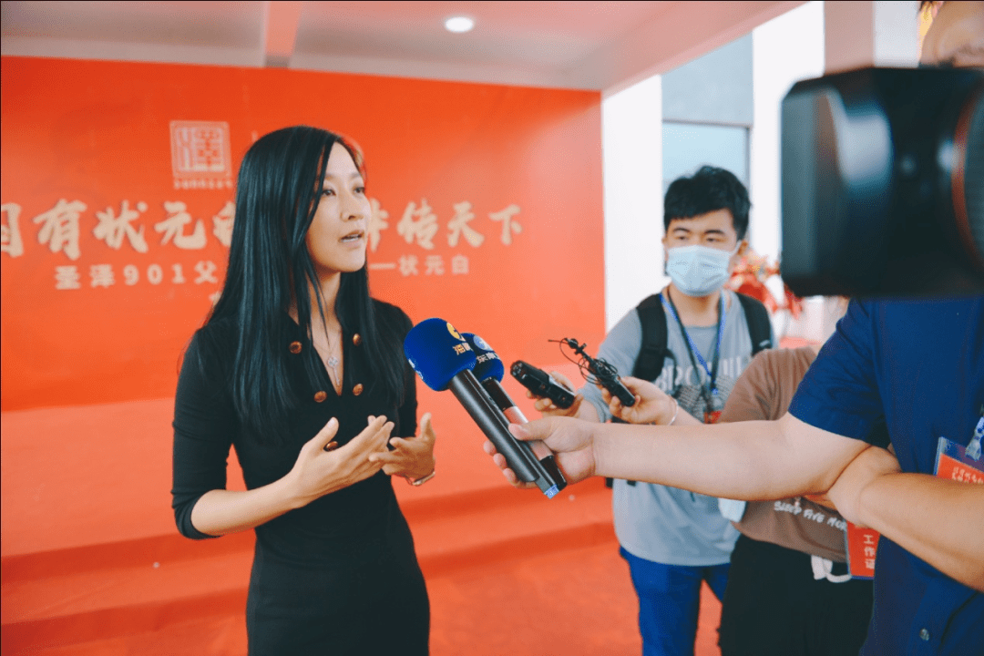 “圣泽901”父母代种鸡雏首发仪式上,圣农集团董事长傅芬芳接受福建广电集团卫视中心记者的专访